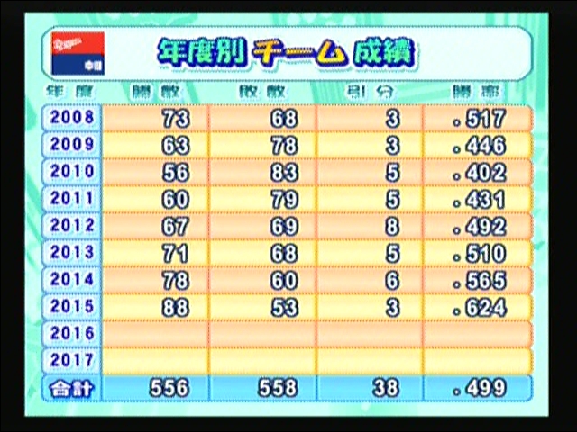 以下、チラシの裏 と言う感想 完全に投手の力で勝っています。 後半の投手成績が良くなったのは、コーチとしてFA獲得した藤川の影響でしょう。 ヨシボールも取得していて、ローテ・村田透・中継ぎのチェンの飛躍につながり、 山内が絶対的守護神の地位を確立しました。 最終年のチェン・山内は防御率が0.85と0.54と安定感も抜群でした。 14年に帰国選手として獲得した和田・石川は、 駒不足のローテの穴を埋める活躍でシーズン2位ながら日本一にもなりました。 が、15年には石川は2軍降格・和田は防御率4.88と期待外れな結果でした。 特に和田の不調は短期決戦時の絶対的エース不在につながり、 シーズン1位ながらCS敗退と言う結果に。 野手に関しては…うーん。 毎年パッとしない成績で、無駄に安定。 最終年以外は送りバント・多いに設定していたため、犠打が無駄に多くなっています。 全体的に、パワー型で固めたせいか、打線の繋がりは弱かったみたいです。 やはり、アベレージ型、俊足型も欲しくなるね。圧倒的なパワーになるなら別だけど。 中身をみると、毎年3割打者は1人居るかどうか程度の打線です。 その1人も森野が到達できるかどうか…。 毎年中軸(と言うか新井・粟野)が期待外れな成績に終わりました。 更に、チャンス or 対左ダウン取得者が続出し、扱いにくい打線になりました。 その取得者のほとんどが、上位打線を期待していたメンバーというのが、もう…。 特に粟野は期待のスラッガーなだけに、手塩にかけて育てたにもかかわらず、チャンス1を取得。 投手は、そこそこ活躍できる選手は自前で用意できます。 が、FA・トレードを利用しないと軸がしっかりしません。 3年目辺りを見れば分かると思いますが、全体的に力不足に悩まされました。 野手は、留学・新人を使えないとアベレージ型を育てるのは…。 パワーA・PH・広角程度なら、コーチに恵まれれば量産できます。 が、それで繋がりのある打線になるのか…。 パワーAとは言え所詮140程度ですし、PHが翌年消える事が多かったです。 つまり、HRも大して打てなかったと言うことですね。 ま、普段パワー180とか使ってるんですから、弱ッ…と思うのも仕方ないですね。
